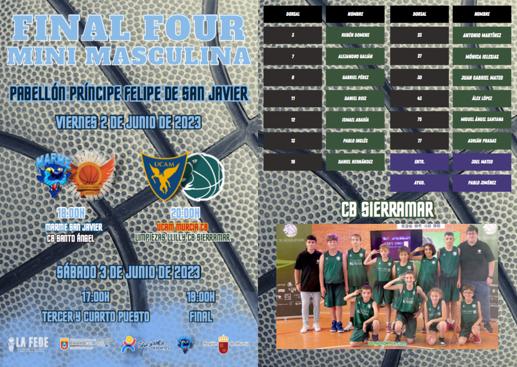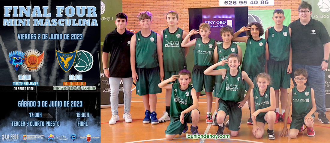 El equipo masculino de minibásket disputa la 'final a cuatro' autonómica este fin de semana en el pabellón Príncipe Felipe de San Javier. Se enfrentará en semifinales al UCAM Murcia CB este sábado (20 horas) y si vence se meterá en la final del domingo (19 horas) contra el ganador del duelo entre Marme San Javier y CB Santo Ángel de Murcia.