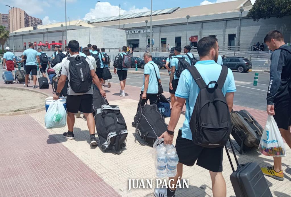 La Unión Atlético, tras efectuar esta mañana una sesión de entrenamiento en el polideportivo Antonio Sanchez, ha iniciado el viaje hacia Asturias con un primer tramo hasta Alicante en autocar y desde ahí en tren Avia hasta Oviedo, donde llegarán esta noche tras recorrer casi novecientos kilómetros. El ‘partido del ascenso’ se disputará en la tarde del domingo. GALERÍA DE FOTOS (pinchar aquí)