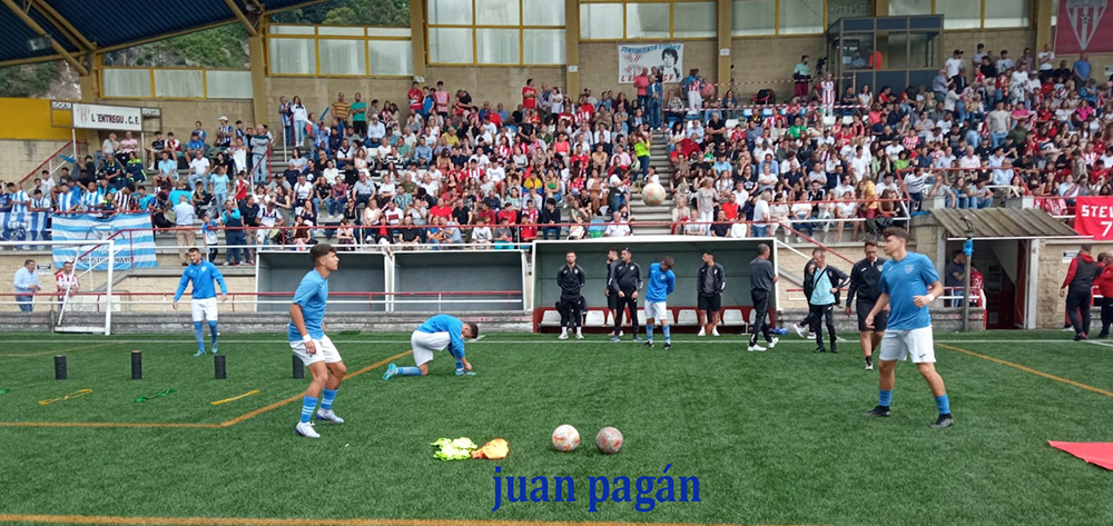 Partido de vuelta de la eliminatoria de ascenso a segunda RFEF disputado en el campo Nuevo Nalón de El Entrego (Asturias). Lleno. L'Entregu FC jugará con camiseta rojiblanca y pantalón azul, mientras que los unionenses lo harán con elástica con frontal blanquiazul y calzón blanco. Arbitra Álex Rivas, del colegio vasco.