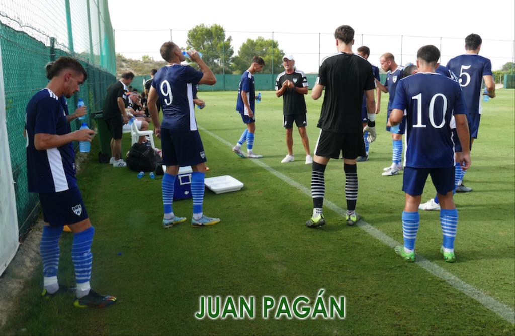 Partido amistoso de pretemporada disputado esta mañana en el campo de fútbol de la Finca Golf Resort (Algorfa). El entrenador unionista, Palomeque, alineó de principio a Nico, Aguirre, Sergi, Monty, Pitu Viera, David Franco, Jesús, Walter, Sergio León, García y Belencoso, siendo este último quien ejerció de capitán. Tras el descanso jugaron Ángel, Ferrer, Juampe, Fran Nüñez, Luis Castillo, Grillo, Florián y Mario.