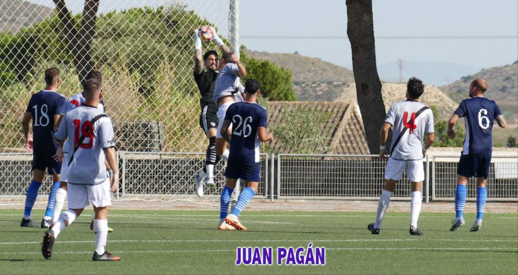 La Unión Atlético registra su quinto partido de pretemporada sin ganar y el cuarto sin marcar con el empate a cero frente al Rácing Cartagena, pero al ser pretemporada no es una situación grave y queda tiempo para buscar soluciones hasta que en septiembre comience la liga de Segunda RFEF. En la foto, el meta Iván rechaza con el pie el máximo castigo ejecutado por el jugador local Florián.
