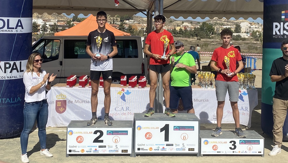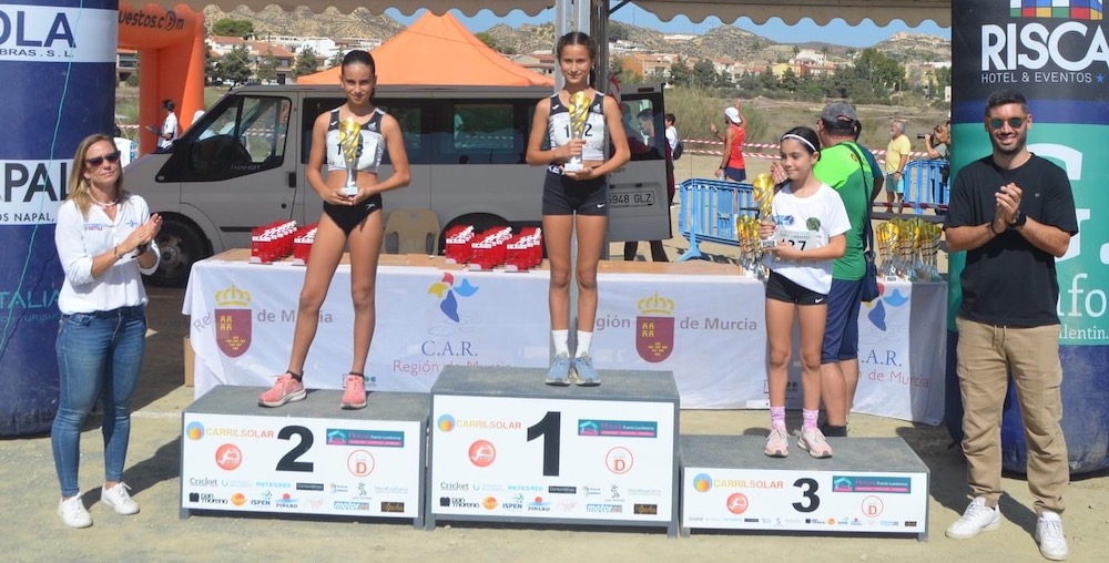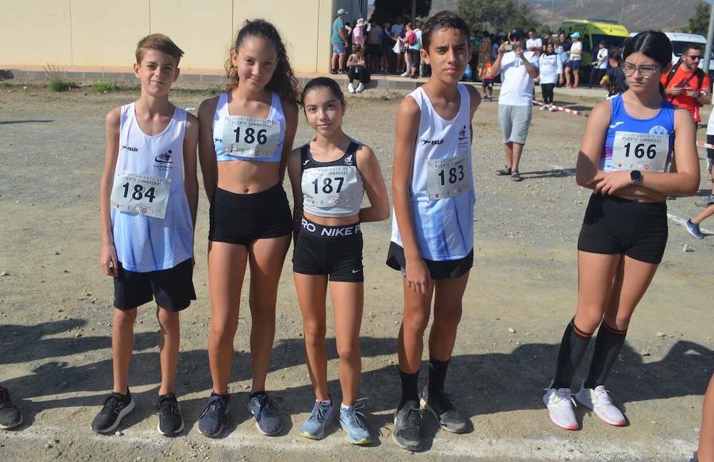 El cuarteto del club atletismo unionense formado por Aaron Laencina, Francisco Sánchez, Manuel Martinez y Daniel Nalda logra el segundo puesto el campeonato regional por clubes y se clasifica por segundo año consecutivo para el Campeonato de España de campo a través. En la foto, las chicas sub-12 que subieron a lo más alto del podio en Puerto Lumbreras.