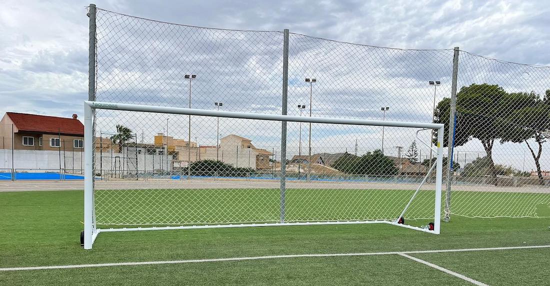 El Ayuntamiento de La Unión informa que ha incorporado tres nuevas porterías, una de fútbol y dos de fútbol-7, en el polideportivo municipal Antonio Sánchez de la ciudad. En la foto, la edil de Deportes, Aurora Ródenas.