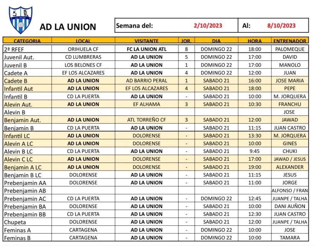 El trofeo ciclista unionense llega a su trigésimo quinta edición este domingo con nuevo recorrido. Además, ofrecemos rivales, fechas y horarios de los compromisos de las ligas autonómicas del CD Vedruna de fútbol sala; CB Sierramar de baloncesto y Surmenor de voleibol, a los que se suma el fútbol con los compromisos de La Unión Atlético, Ciudad de La Unión, Portmán Atlétic y AD La Unión. De este último club, la foto adjunta muestra al alevín que ganó al CD Lumbreras por 0-3 en la anterior jornada.