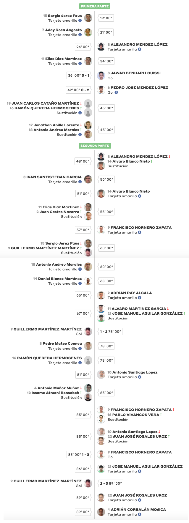 La Minera, con un equipo más joven que su adversario (entre 19 y 25 años tenían los que estaban sobre el terreno de juego), parecían controlar el partido, mientras que el Ciudad de La Unión tardó veinte minutos en efectuar su primera disparo contra el marco rival.
