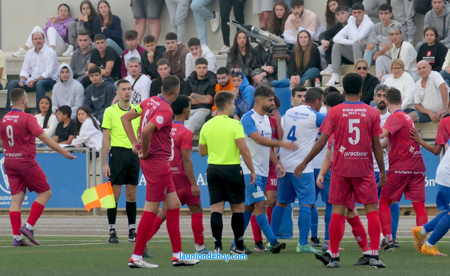 Por cierto, especialmente en este tramo, resultaba difícil ver un buen ritmo de fútbol por la sucesión de paradas en el juego por las numerosas faltas señalizadas (unas acertadas, otras no y no faltaron las 'teatralizadas' por los jugadores) por un colegiado, que por lo que vimos, no terminó de gustar a alguno de los contendientes, que también colaboraron en esa situación con las excesivas tensiones y protestas.