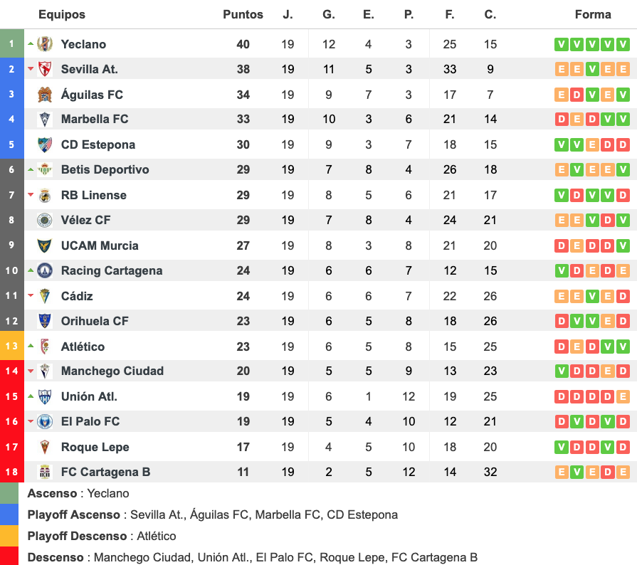 En la clasificación y pese a lleva un empate y cuatro derrotas en las últimas cinco jornadas, La Unión Atlético sigue cerca de salir de la zona de descenso, pero urge vencer. La próxima semana se enfrenta al San Roque de Lepe, penúltimo clasificado. Ahí ya es una obligación hacerlo.