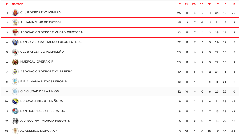 El CD Ciudad de La Unión cae derrotado en el campo de la EF Alhama un partido en el que fue ganando en dos ocasiones merced a los goles de Guillermo Martínez y de Antonio Muñoz, acercándose ahora a los últimos puestos de la clasificación pese a ser el segundo equipo del grupo que más tantos lleva.
