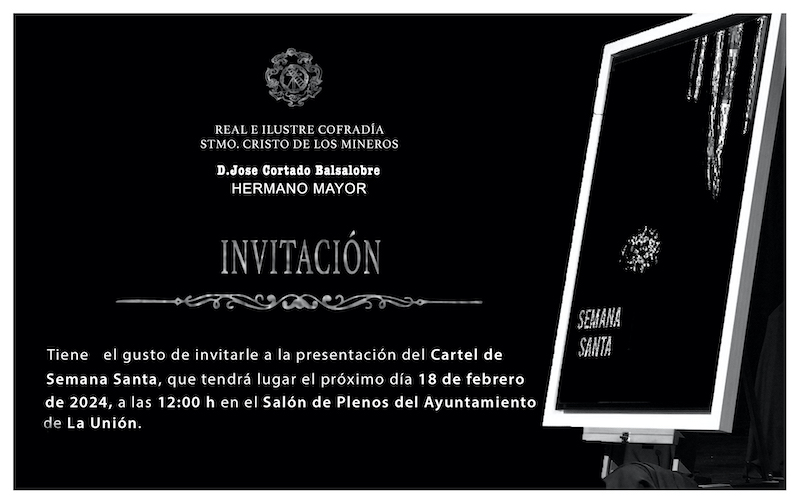 Domingo. 12 horas. Presentación del cartel de la Semana Santa Minera en el salón de actos del Ayuntamiento de La Unión