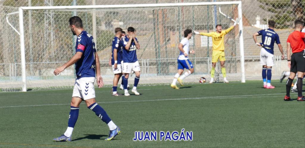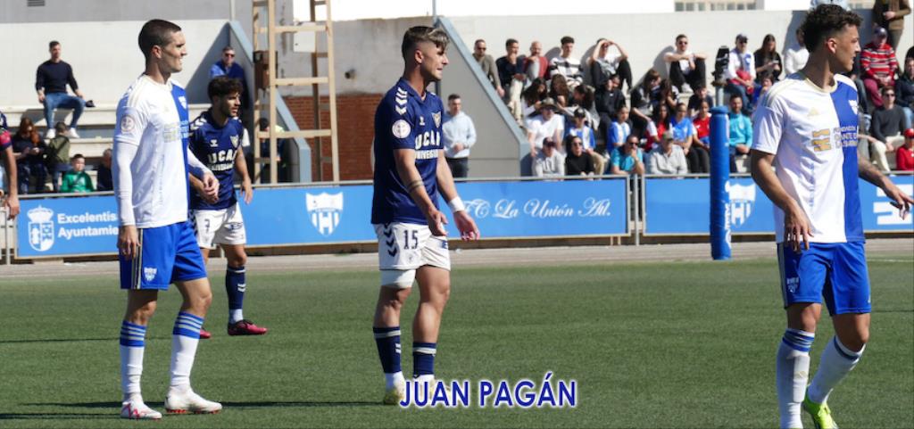 Fue el UCAM el que más tiempo tuvo el balón. Quería controlar y dominar, pero el fútbol son goles y ahí era La Unión Atlético el más vertical. Sus jugadores cogían menos el esférico, pero, cuando lo hacían, era difícil ver pases hacia atrás y sí verticalidad hacia la meta de Zorro. Quedaban seis minutos para el descanso y llegó el gol de Juampe.