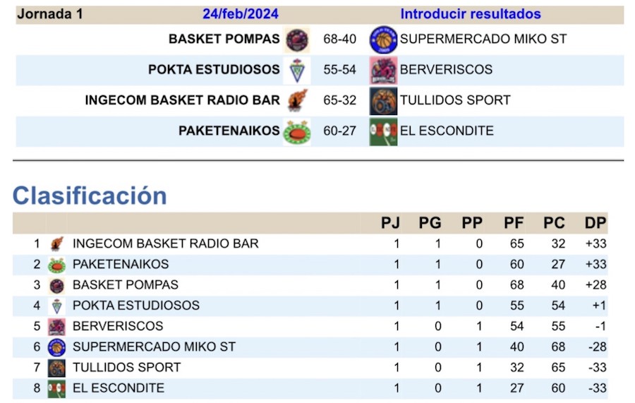 La décimo quinta edición de la liga de baloncesto 'Ciudad de La Unión' ha comenzado con una primera jornada en la que se registraron tres triunfos con marcadores claros, que permiten a Basket Radio Bar ser el primer líder, y con un duelo emocionante en el que Pokta Estudiosos venció por sólo un punto de diferencia a Berveriscos.