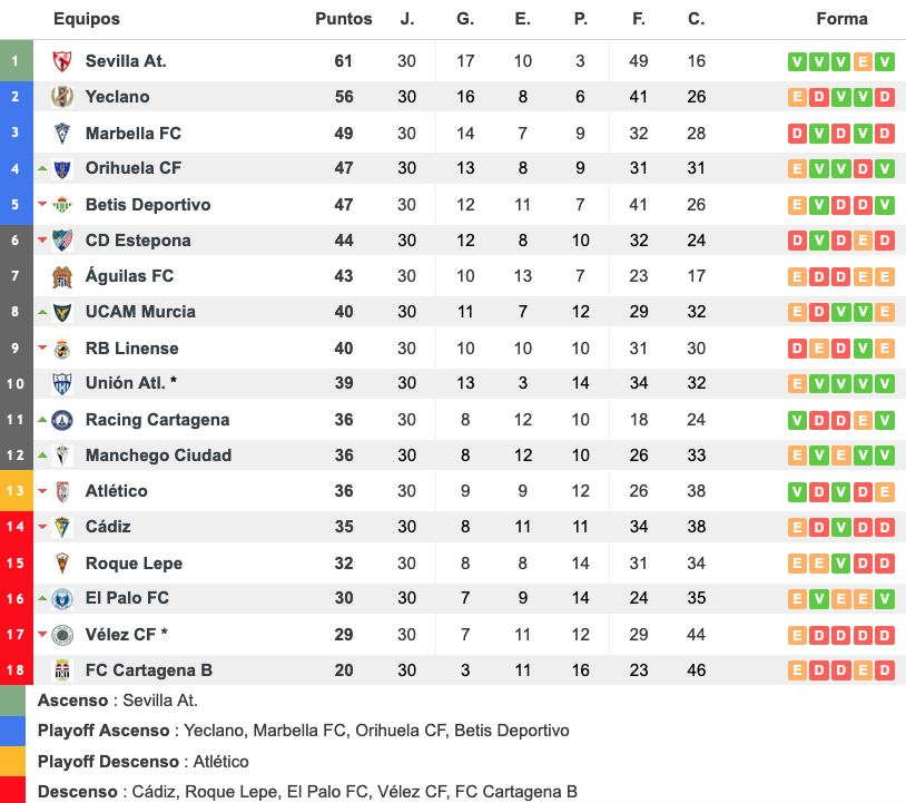 - Clasificación extraída de www.resultados-futbol.com