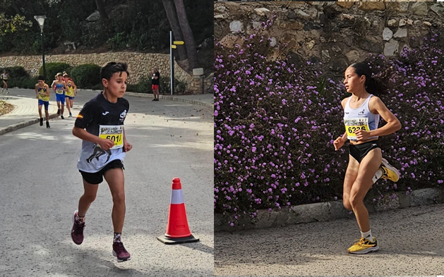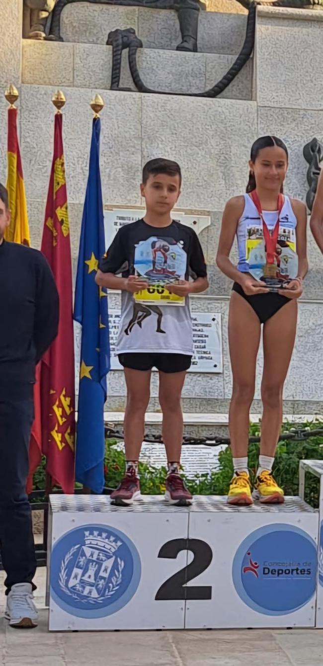 David Jiménez y Noelia Sánchez, del Club Atletismo La Unión, logrando el segundo puesto en las respectivas categorías (masculina y femenina) de alevín (de 10 a 14 años de edad) en la décimo tercera edición de la popular 'Ruta de las fortalezas' celebrada ayer en Cartagena.