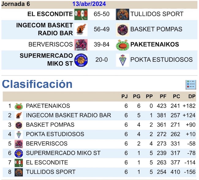 Paketenaikos parece dispuesto a recuperar la corona que tuvo en 2022 y no cede al frente de la liga regular del XIV torneo local del deporte de la canasta. Por su parte, en duelo entre equipos que ocupaban la segunda plaza, Ingecom Basket superó a Basket Pompas. En la cola, El Escondite y Supermercado Miko estrenan victoria en sus casilleros.
