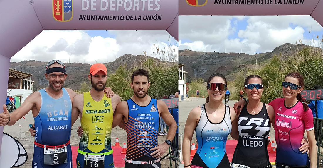 Marina Lledó, del CT Cartagena, y a Álvaro López, del CT Albacete Res, han sido los ganadores absolutos del VIII Triatlón Audi Bahía de Portmán, que se celebró ayer, domingo, en su formato habitual de 1.000 metros de natación, en aguas abiertas; 30 kilómetros de ciclismo y 6 kilómetros de carrera a pie por un recorrido mixto donde hay una parte de tierra.