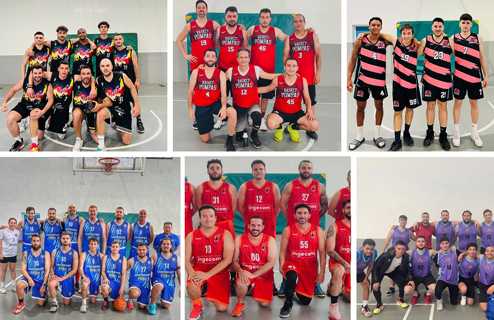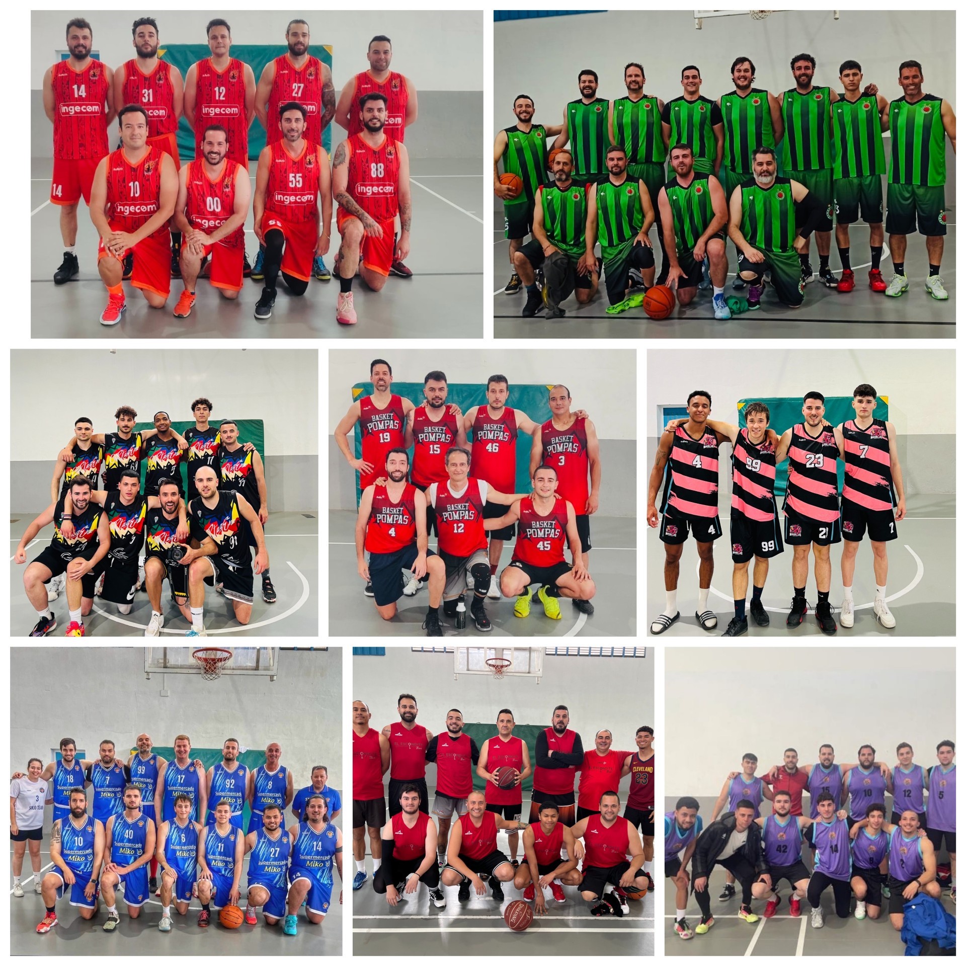 Foto-póster donde figuran los ocho equipos participantes esta temporada en la XV liga local de baloncest ‘2001 Sport-Ciudad de La Unión’: Ingecom Basket, Tullidos Sport, Pokta Estudiosos, Supermercado Mio, Paketenikos, El Escondite, Basket Pompas y Berveriscos. El torneo culmina este sábado los cuartos de final por el título en el pabellón de 'La bombonera'.
