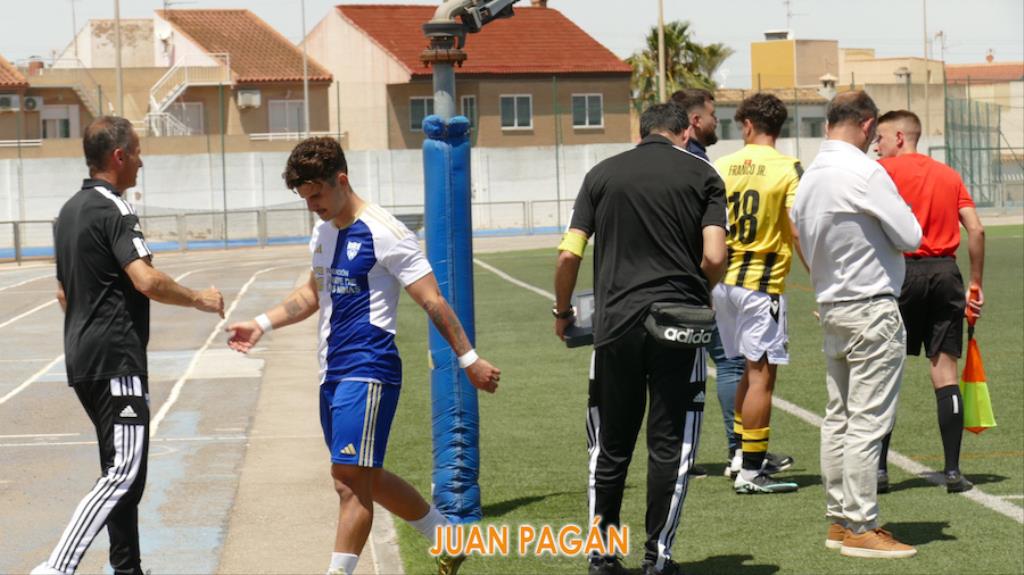 Polideportivo Antonio Sánchez de La Unión. Partido de la jornada 34 del Grupo 4 de Segunda RFEF. La única tarjeta amarilla del partido la vio el futbolista local Adrián Ruiz. El partido llevó a cabo pausas para hidratación al regresar las altas temperaturas.