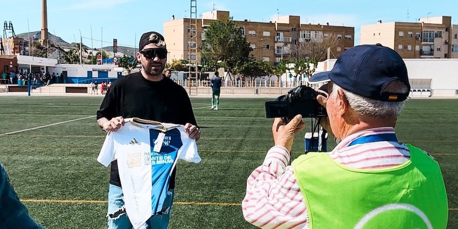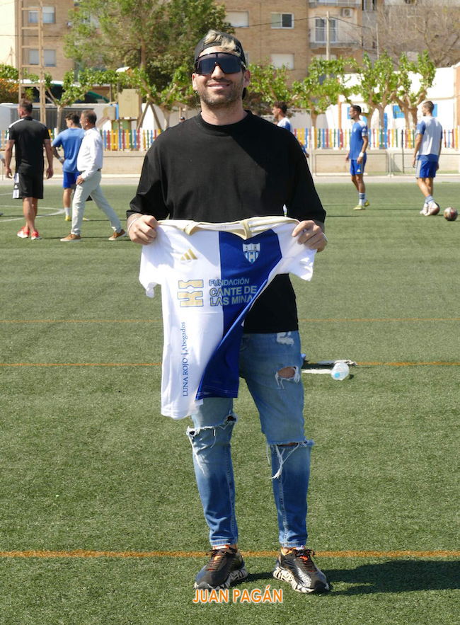 El afamado 'dj' unionense ha estado esta mañana en el polideportivo presenciando el partido entre La Unión Atlético y Cádiz Mirandilla, donde ha sido obsequiado por el club local con una camiseta.