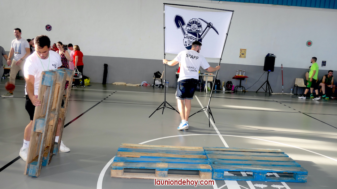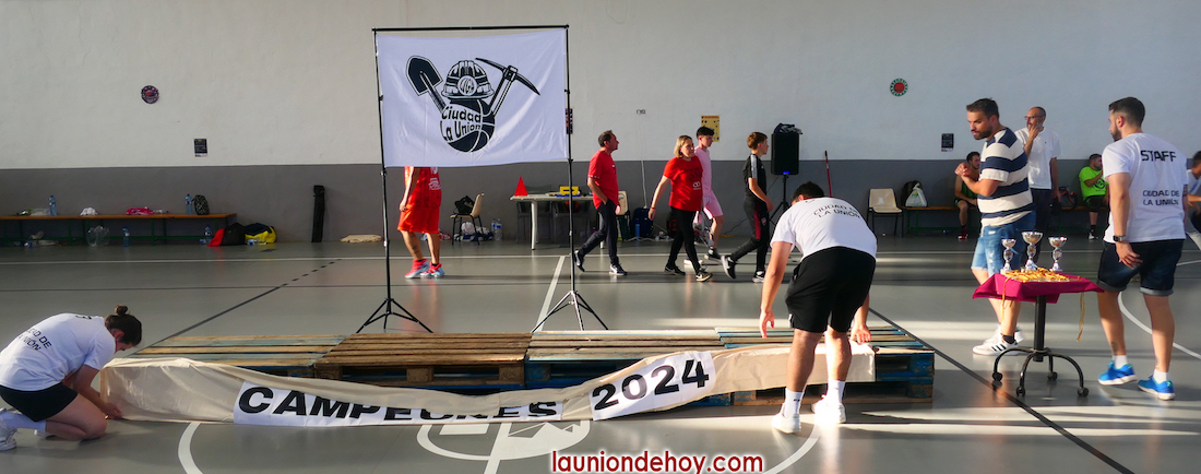 La asociación deportiva que organiza la liga de baloncesto local 'Ciudad de La Unión' suple la falta de más medios con trabajo e ilusión, logrando, como se observa en la foto, que unos palés se conviertan en un estupendo podio.