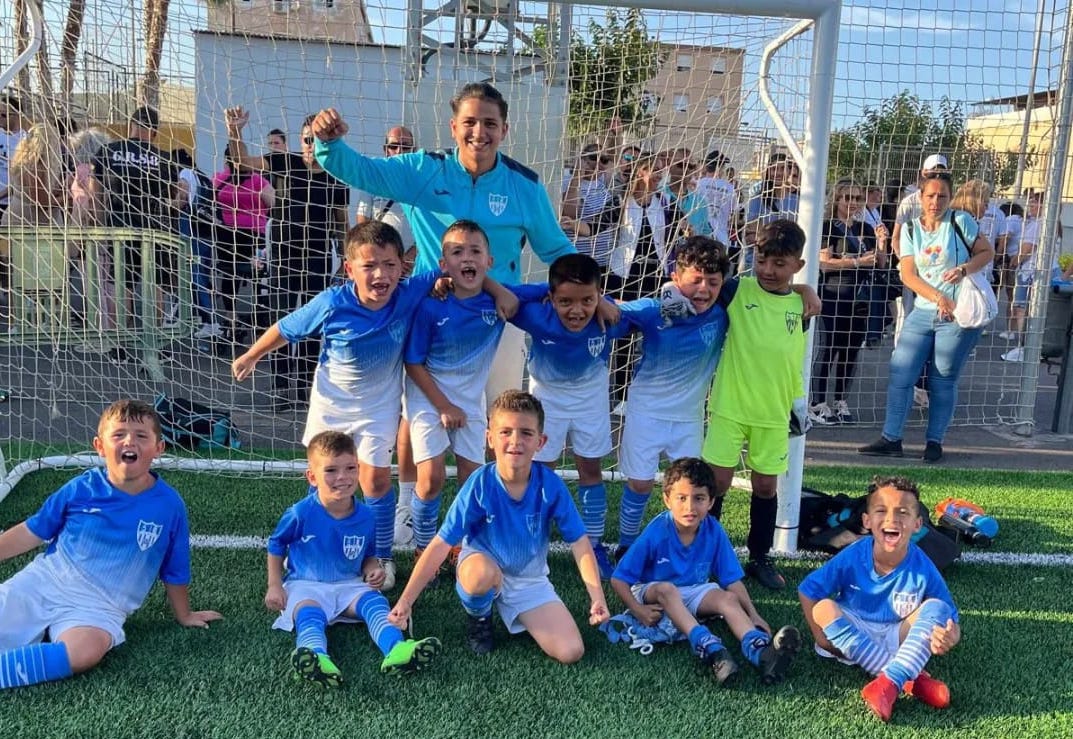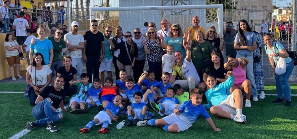 Fotografía del equipo de la AD La Unión de categoría prebenjamín que ha ganado por 6-4 al Cartagena en el partido de ida de la semifinal de las eliminatorias por el título de la liga comarcal de fútbol-8 base.
