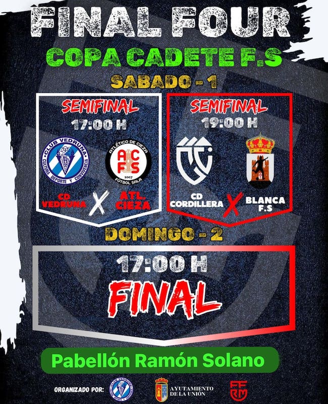 El equipo de fútbol sala de La Unión se enfrenta al Atlético Cieza este sábado, a las cinco de la tarde en el pabellón Ramón Solano, cancha en la que después se enfrentarán CD Cordillera y Blanca FS en la segunda semifinal, siendo los vencedores de ambos partidos los que disputen el título de campeones de la temporada 2023/24 al día siguiente en el mismo escenario.