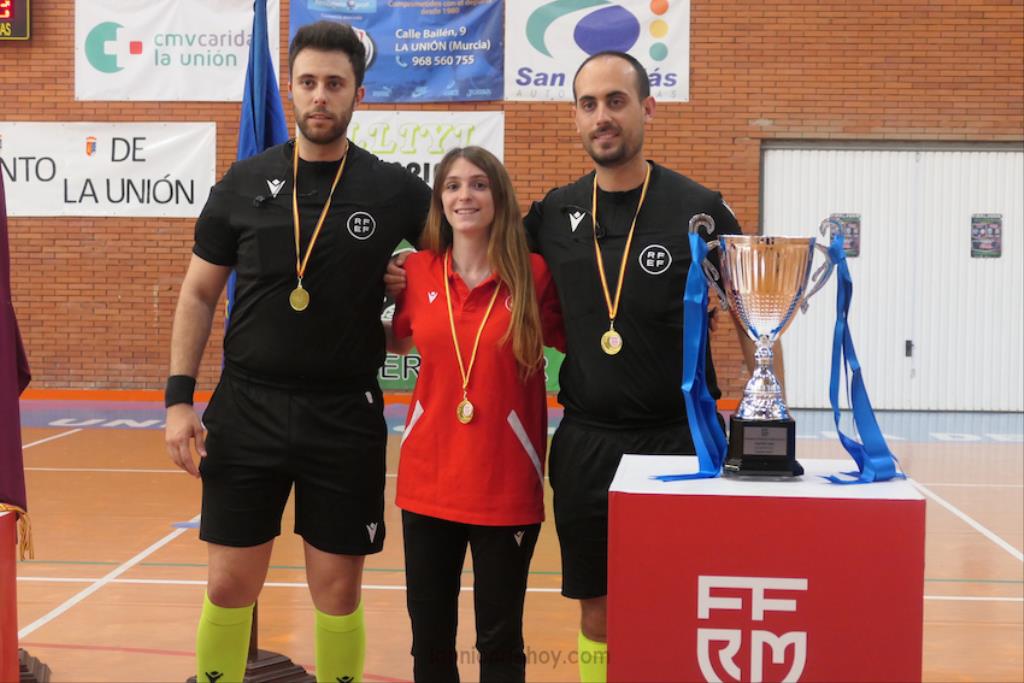 Las preseas fueron impuestas por Aurora Ródenas, edil de Deportes del Ayuntamiento de La Unión; Juan Carlos Olmos, directivo de la Federación de Fútbol de la Región de Murcia; Sergio Zapata, presidente del CD Vedruna; y la hermana Carmen Peralta, cuya aparición en la pista fue otra de las grandes ovaciones de la tarde.