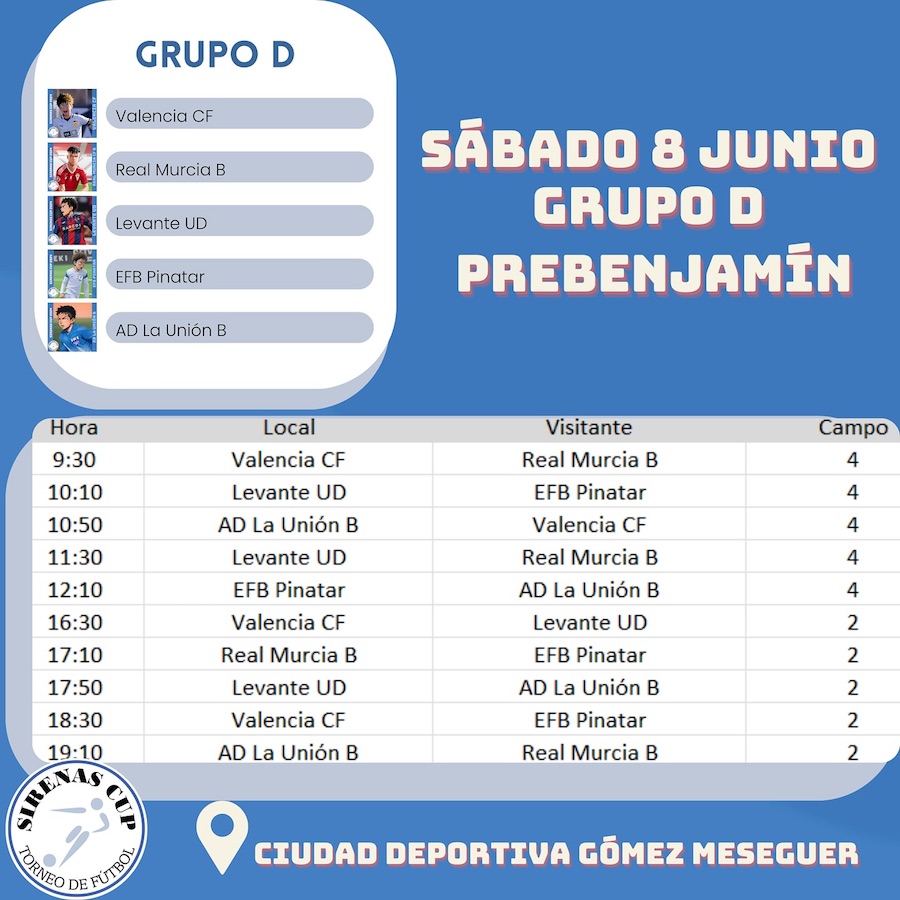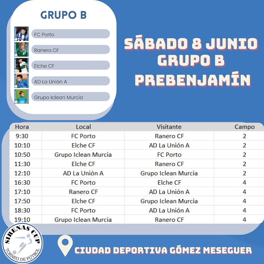 También reseñar que en categoría prebenjamín, que se disputa este próximo fin de semana, se ha efectuado el sorteo de los grupos. En este torneo la AD La Unión compite con dos equipos. Los partidos tienen el sábado como marco la ciudad deportivo 'Gómez Meseguer' de Cartagena.