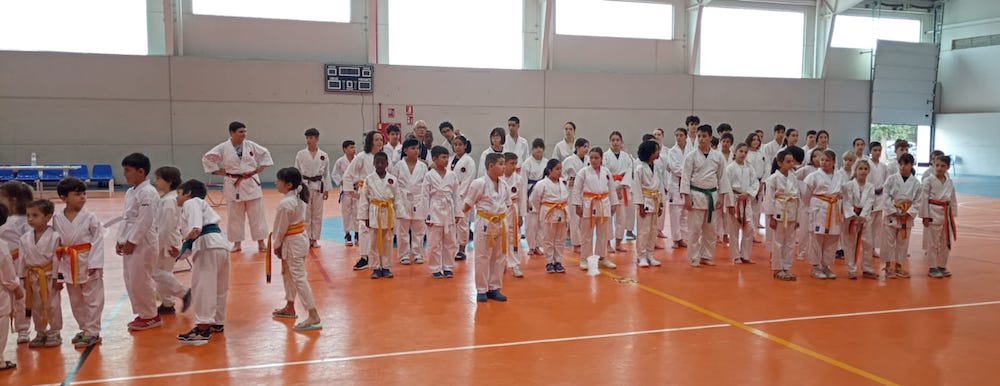 El pabellón rochero ha acogido, durante tres horas, el final del ejercicio 2023/24 del club unionense de kárate con participación de dojos de Murcia y de Alicante.