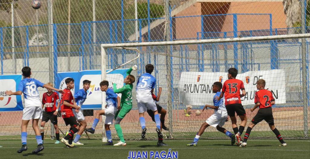 No es habitual un duelo deportivo internacional por estos lares. El torneo ‘Sirenas Cup’ de fútbol base, en su categoría infantil, ha permitido acoger el partido AD La Unión-AC Milan, que se saldó con victoria italiana.