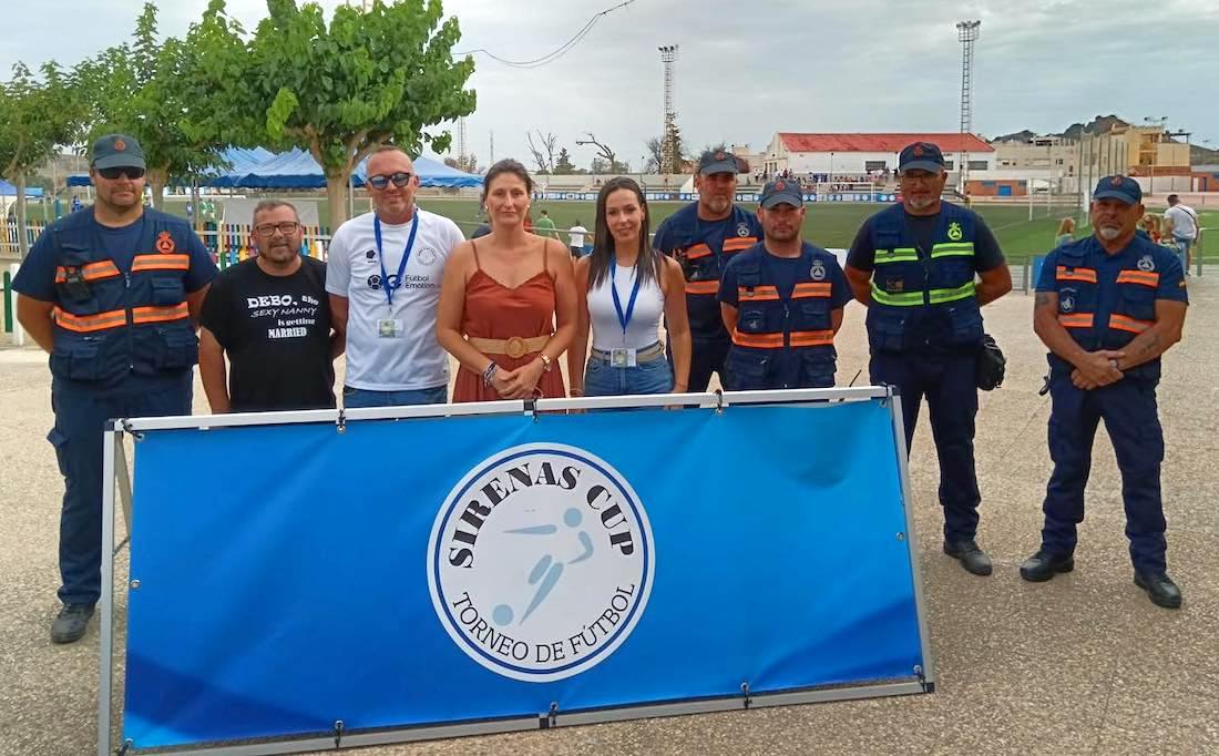 La celebración del torneo contó con la visita de la edil de Deportes del Ayuntamiento de La Unión, Aurora Ródenas, a quien se observa en la foto con representantes de la organización y con personal de Protección Civil de La Unión: