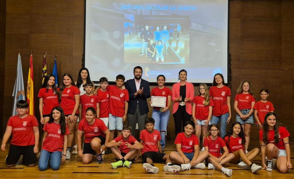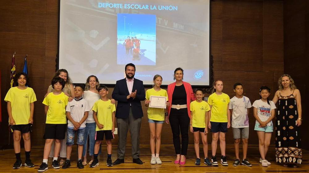 El salón de actos del Ayuntamiento de La Unión ha llevado a cabo un reconocimiento al 'Deporte en edad escolar 2023/24' con la presencia de los centros educativos del municipio que han participado en las actividades deportivas llevadas a cabo durante el curso educativo que esta semana acaba. "El deporte transmite enseñanzas fundamentales, como son el esfuerzo, el compañerismo y el trabajo en equipo", remarcó el alcalde a los asistentes.