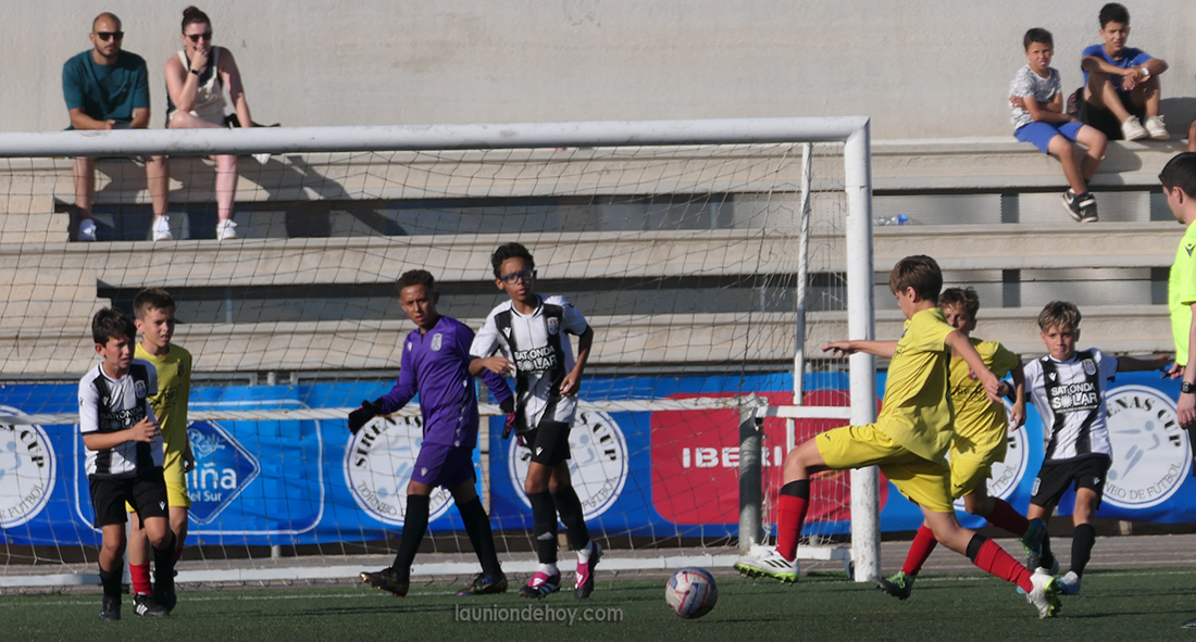 Con el terreno de juego habitual unionense dividido en dos campos, se han disputado hoy los partidos de dos de los cinco grupos de categoría alevín mixto del campeonato ‘Sirenas Cup’, mientras que las instalaciones del complejo ‘Gómez Meseguer’ de Cartagena han sido sede de los restantes partidos.