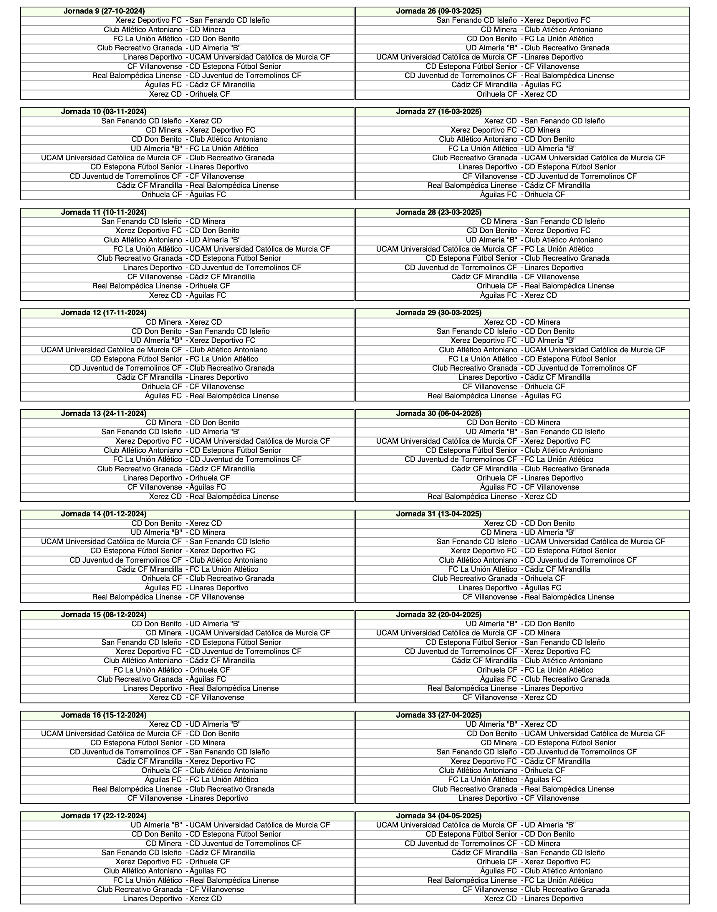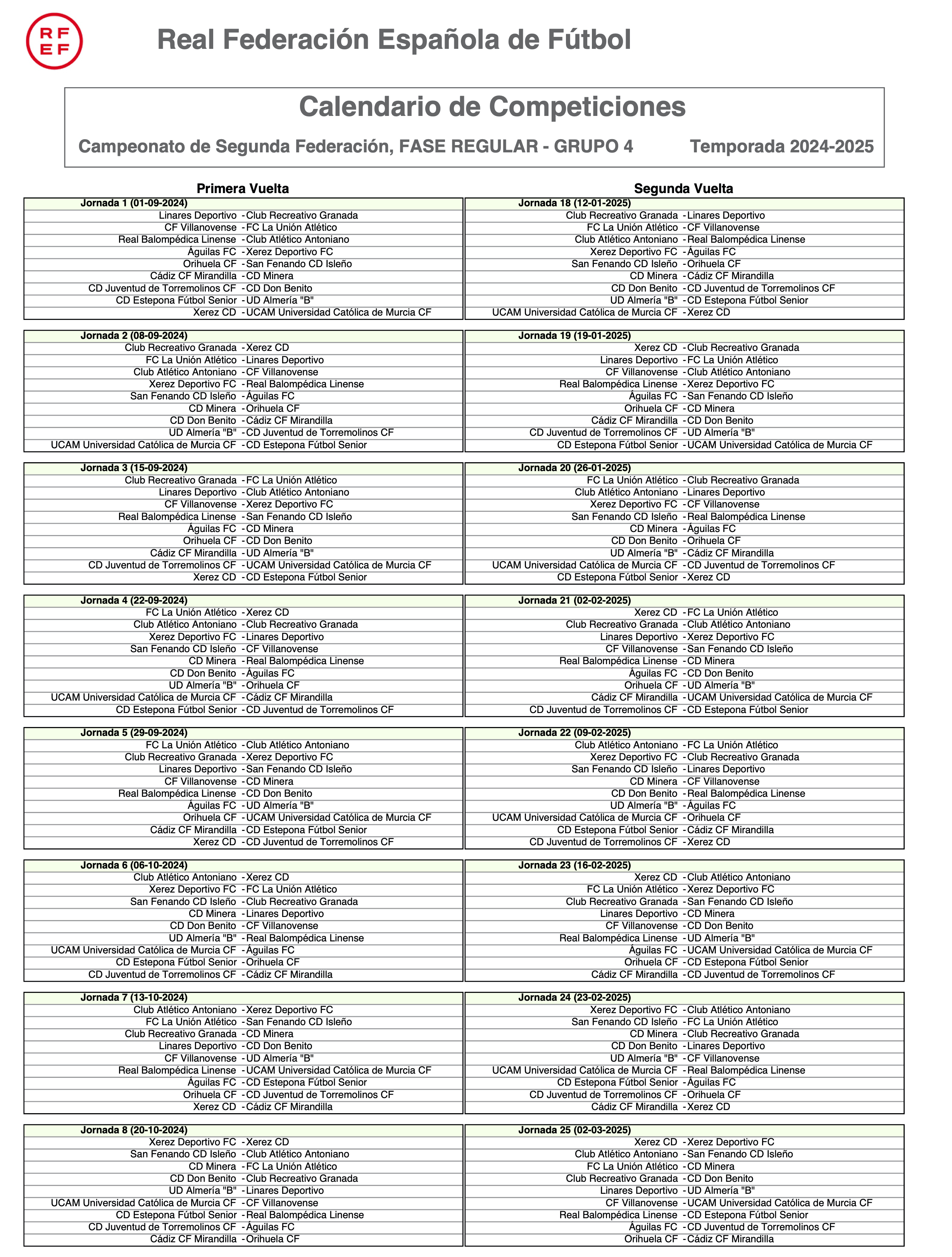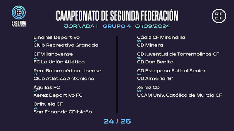 El equipo que entrena José Miguel Campos tendrá como primer rival en la liga 24/25 de Segunda RFEF el uno de septiembre al CF Villanovense, equipo de Villanueva de la Serena con el que coincide en una amplia renovación de la plantilla. Los partidos de rivalidad minera frente a la Deportiva Minera tendrán lugar el 20 de octubre en El Llano del Beal y el 2 de marzo en el polideportivo Antonio Sánchez.