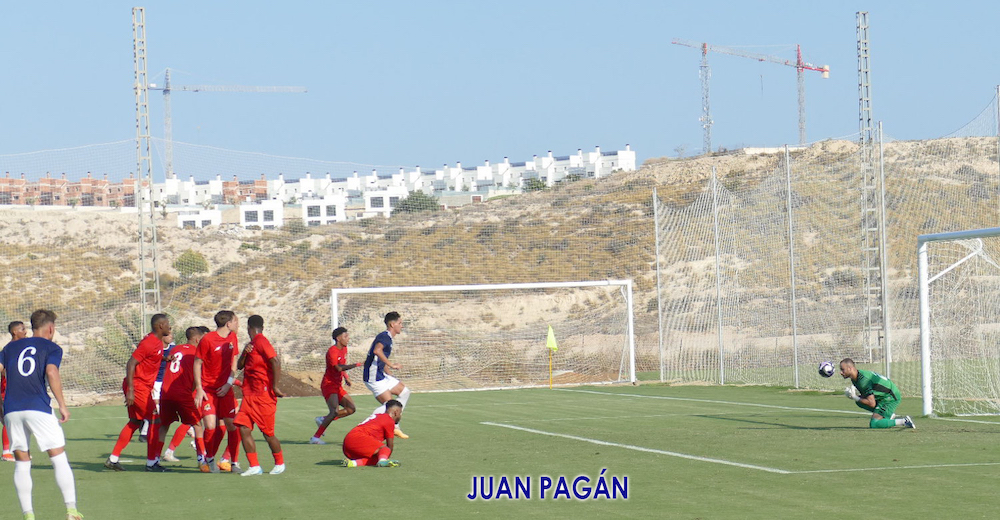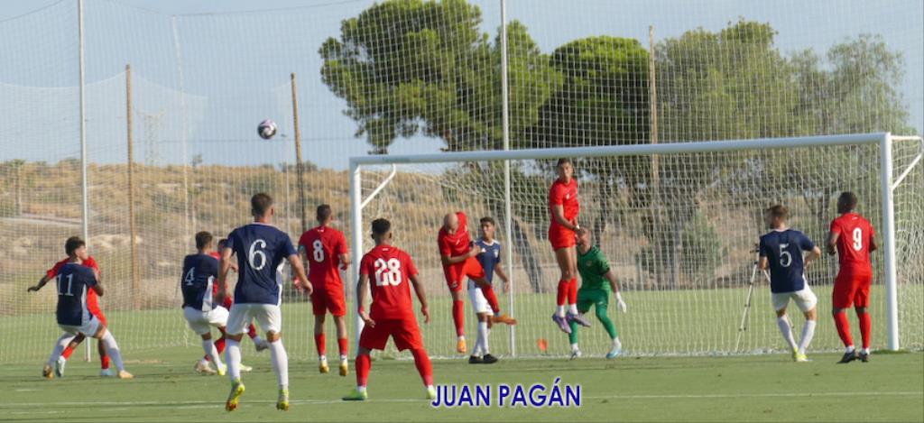 Poco más tarde, una gran internada acabó con una falta al borde del área que lanzó Javi Pedrosa. El extremo apostó por un disparo tenso al lado del portero, pero el portero rival se mostró firme. Sin embargo, la más clara llegó tras la pausa para la hidratación. En una buena presión adelantada, Alvarito recibió en la medialuna un caramelito listo para encañonar con su diestra, pero el balón se estrelló en el travesaño.