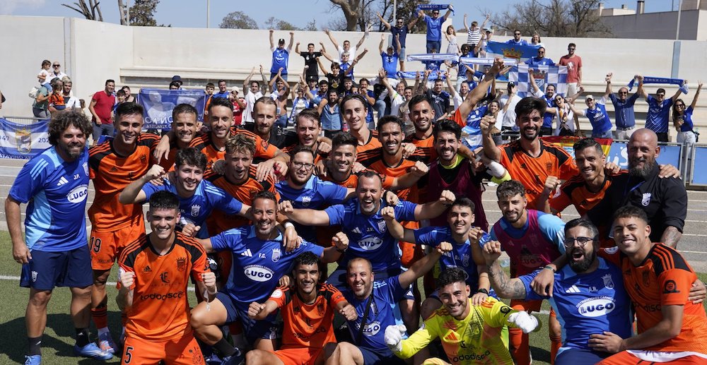 El equipo minero de Segunda RFEF, curiosamente, recibe los goles que suponen su derrota cuando mejor está jugando. Sucedió hace una semana en Granada y ha vuelto a suceder hoy ante el Xerez, equipo en el que, por segunda vez, Santisteban le da los tres puntos al marcar en los minutos finales y después de salir del banquillo. En la foto, los andaluces eufóricos con sus aficionados.