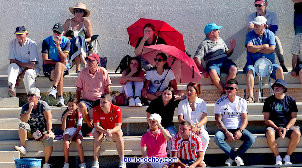 Matinal de paraguas para combatir el sol / Campos expresa que ha sido una derrota dura, no cree que tengan que saltar ‘las alarmas’ y no entiende su expulsión / El nuevo uniforme del equipo renueva el diseño blanquiazul tradicional con dos franjas anchas azuladas y el resto de color blanco