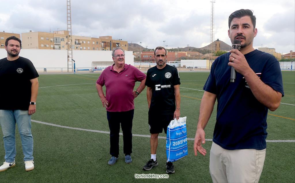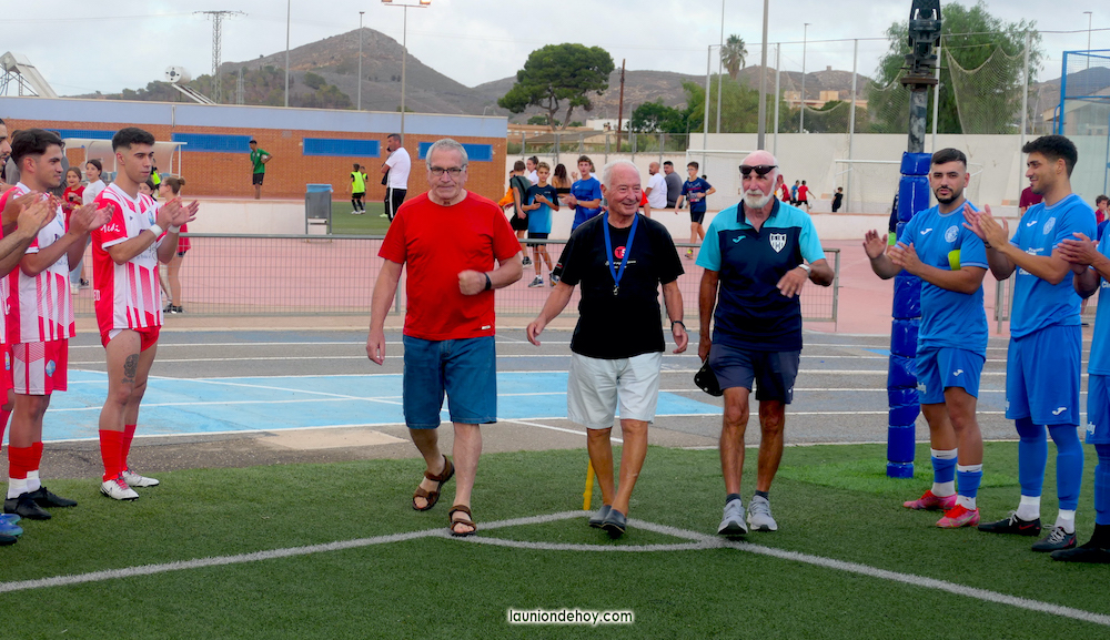 El CD Ciudad de La Unión disputó ayer la segunda edición de su trofeo de pretemporada, que ha pasado a ser el primero de las ‘Fiestas del Rosario’, según apuntó ayer el alcalde, Joaquín Zapata, durante su alocución, en la que lucía camiseta de la peña ‘Virgen del Rosario’, que es a la que pertenece hace años. Pues bien, antes de comenzar este encuentro, el presidente del CD Ciudad de La Unión, Ramón Quereda, se dirigió al público asistente para agradecer su presencia, al igual que al apoyo que recibe la joven entidad de los patrocinadores, para a continuación anunciar que se iba a efectuar un homenaje del club a tres personas muy ligadas al fútbol unionense.