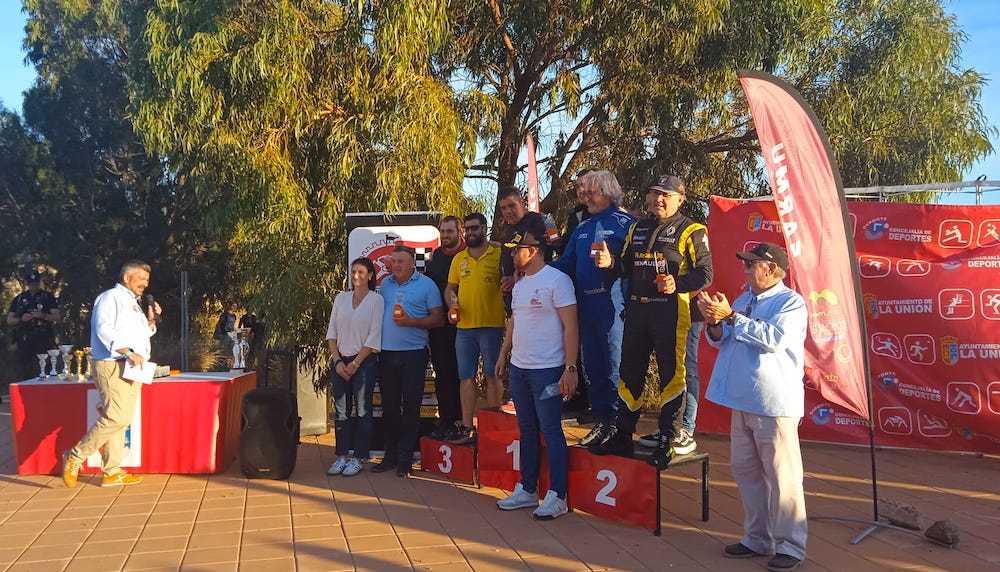 En la entrega de premios estuvo la edil de Deportes del Ayuntamiento de La Unión, Aurora Ródenas, y el nuevo presidente de al Federación de Automovilismo de la Región de Murcia, David Cánovas Arias, a quien se le observa al lado de la concejala y que tomó posesión hace ocho días, siendo Portmán su estreno oficial público en el cargo.