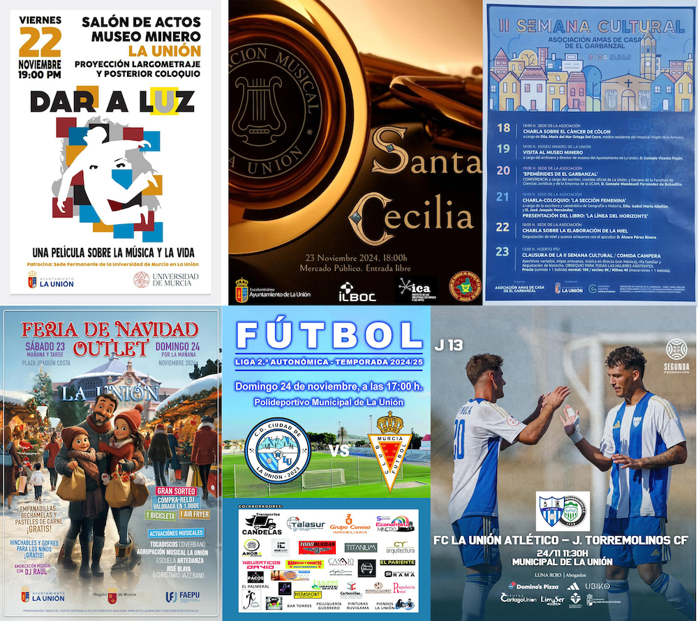 La miel y el cine abren la agenda esta tarde, mientras que el sábado es para el almuerzo campero que cerrará la semana cultural de las mujeres de El Garbanzal y para el concierto en honor a la patrona de la música, además del inicio de una animada 'Feria Outlet' prenavideña que se prolongará al domingo por la mañana. En el deporte juegan como locales los dos máximos representantes del fútbol y también ofrecemos fecha, horarios y escenarios para los equipos de base del CD Vedruna de fútbol sala, CB Sierramar de baloncesto y Surmenor de voleibol femenino, donde uno de los partidos se juega en Roche. También hay un torneo de fútbol base en Portmán.