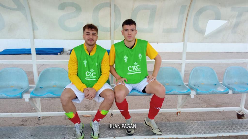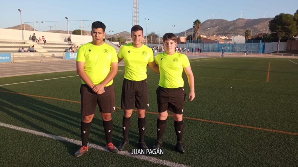 El equipo minero de segunda autonómica de fútbol resuelve con una goleada el partido frente al Real Murcia C con dianas de Indio, Villa y doblete de Aday. En la imagen, los tres goleadores.