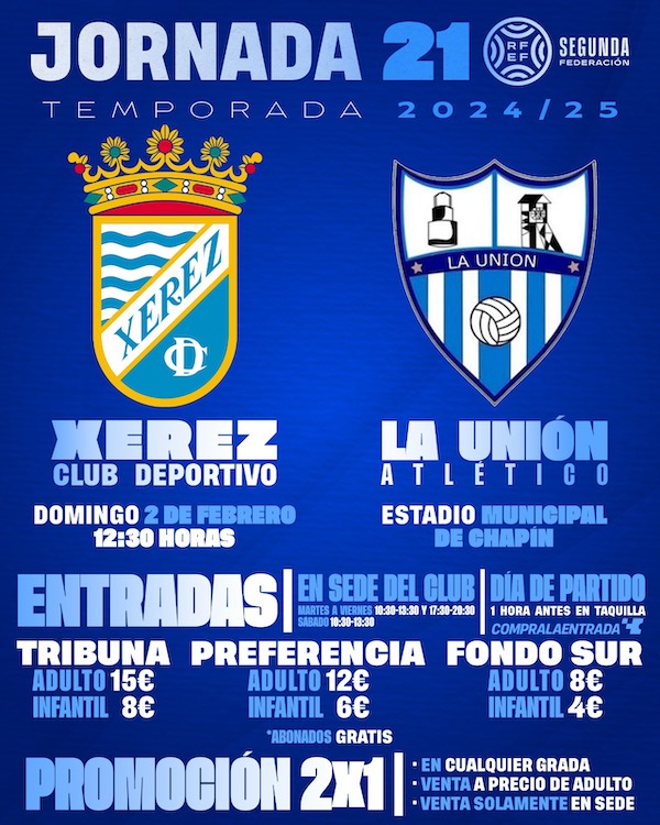 También reseñar para el partido de este domingo que el Xerez CD, dada la importancia del duelo ante un rival directo, ha lanzado la promoción de dos entradas a 15 euros en tribuna, dos a 12 euros en preferencia y dos a 8 euros en el fondo sur.