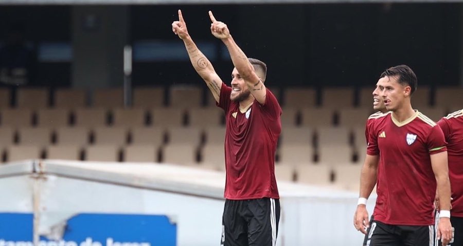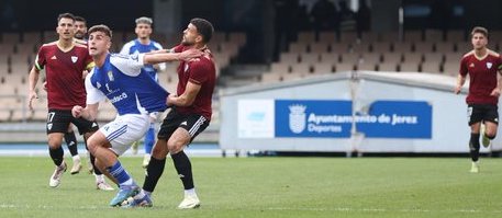 El delantero marca el gol del triunfo frente a un rival directo en un campo del Xerez CD que atrajo a 8.569 espectadores. El cuadro minero se sitúa a un punto del liderato.