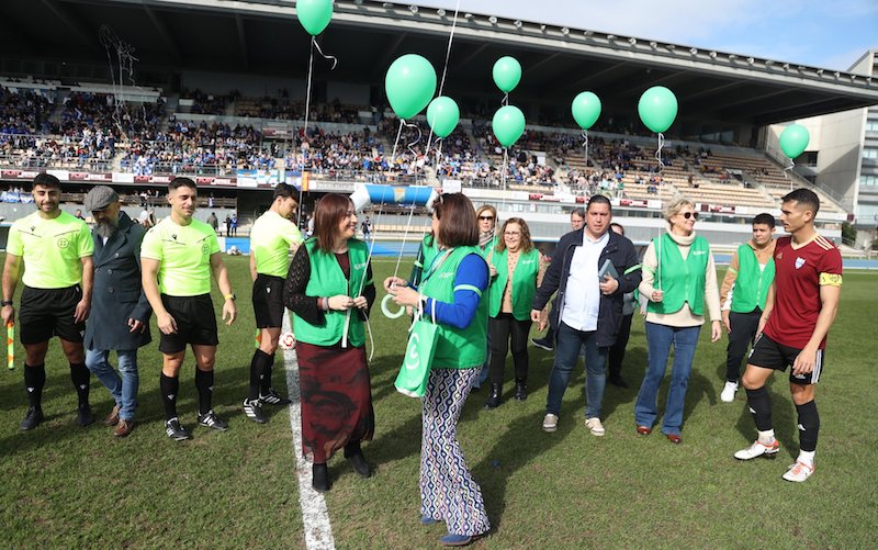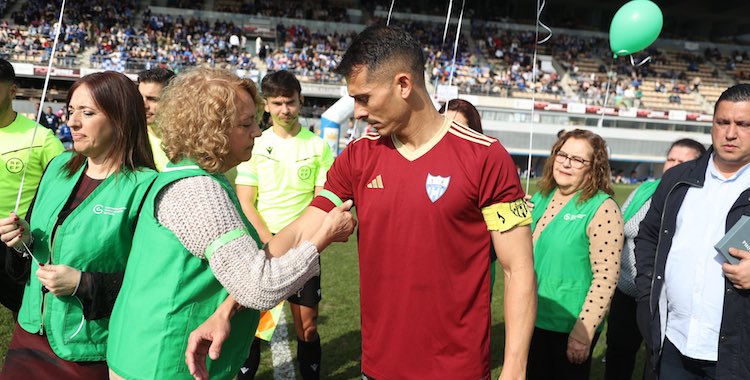 Los jugadores del CD Ciudad de La Unión y de La Unión Atlético han lucido este domingo en sus brazos los brazaletes verde que, en el día internacional contra esta maldita enfermedad, da visibilidad a la lucha para reducir su impacto y la labor de la Asociación Española contra el Cáncer. Arriba, la plantilla del Ciudad con la representación de la delegación local de la AECC y en el lateral se observa a Armando recibiendo el símbolo en Jerez de la Frontera.