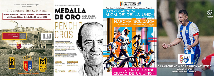 Intenso viernes para empezar con primera jornada del congreso sobre la Sierra Minera (continúa el sábado), estreno del taller de rap y entrega de la medalla de oro a Pencho Cross. En el deporte, el domingo es para el cross en un fin de semana donde descansa el CD Ciudad de La Unión de fútbol pero no los equipos de La Unión Atlético, AD La Unión, CD Vedruna de fútbol sala, Club Baloncesto Sierramar y Surmenor de voleibol.