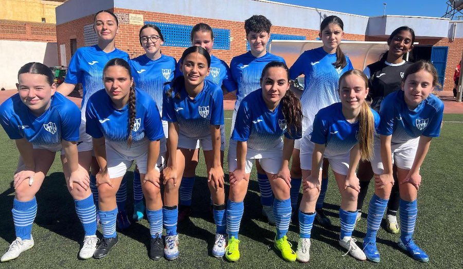 Una formación de esta temporada del equipo femenino de la AD La Unión de fútbol en la liga comarcal de fútbol base.