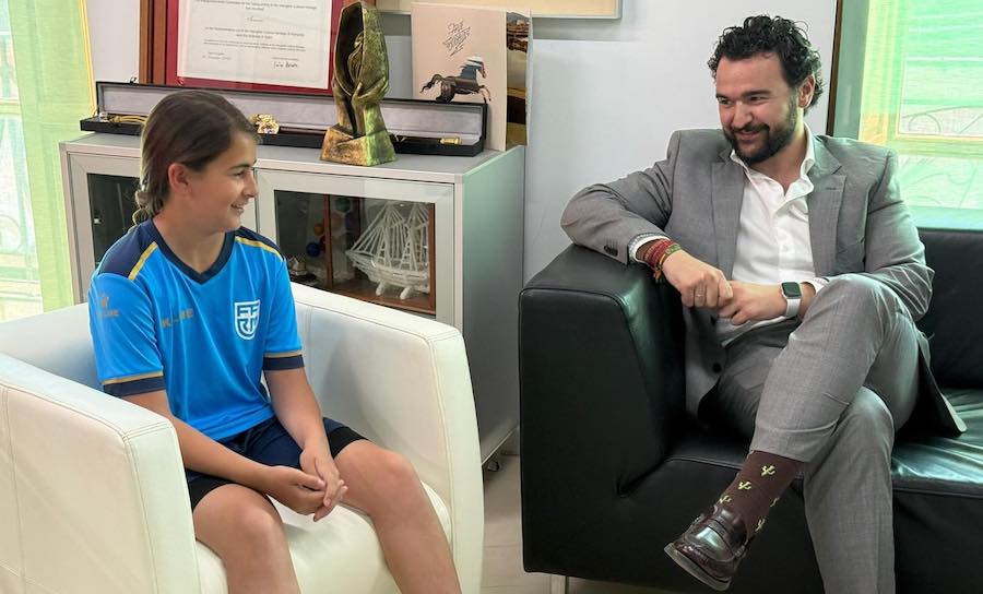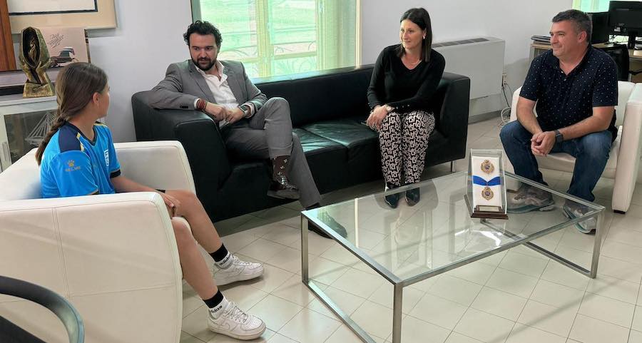El alcalde, Joaquín Zapata, y la concejal de Deportes, Aurora Rodenas, han recibido a Daniela Perales Roca, jugadora unionense que milita en el FC Cartagena y que ha sido convocada para el Campeonato de España de selecciones autonómicas Sub-12 de fútbol femenino que se celebrará en Madrid.