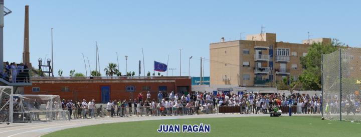 Después, un goteo incesante de público fue entrando en el polideportivo para dirigirse a los alrededores del campo de fútbol Miguel Expósito, generando un estupendo ambiente. Luego, debido a lo fuerte que pegaba el sol, bastantes dejaron la grada para buscar lugares sombreados.