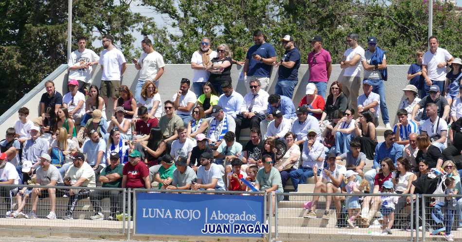 También reseñar que el alcalde vio el partido en la soleada grada junto al presidente, Julián Luna, y al director general, Mario Luna. Entre los espectadores también pudimos ver a ediles de PP, VOX y DLU, además de integrantes del PSOE local que son aficionados habituales. Sí fueron espectadores excepcionales entrenadores del fútbol regional, como Popi y Tano Moltó, entre otros.