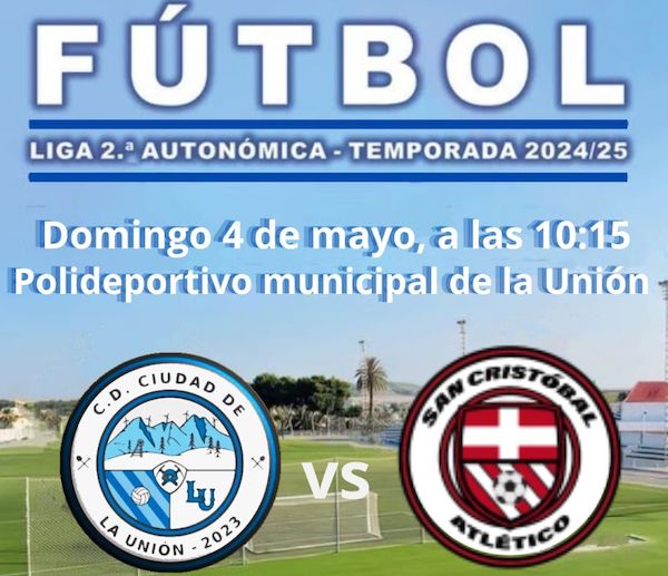 Segunda autonómica: CD Ciudad de La Unión-AD San Cristóbal, domingo a las 10.15 horas en el campo Miguel Expósito del polideportivo Antonio Sánchez de La Unión.