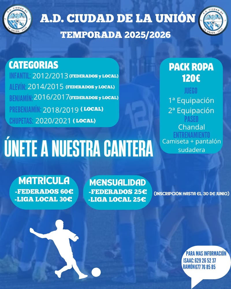 Ramón Quereda explica a esta redacción que la creación de la escuela de fútbol de la AD Ciudad de La Unión "es un paso más dentro de nuestro proyecto de potenciar la cantera local. Hemos establecidos unos precios asequibles merced a que los que estamos aquí seguimos trabajando sin ánimo de lucro", afirma.